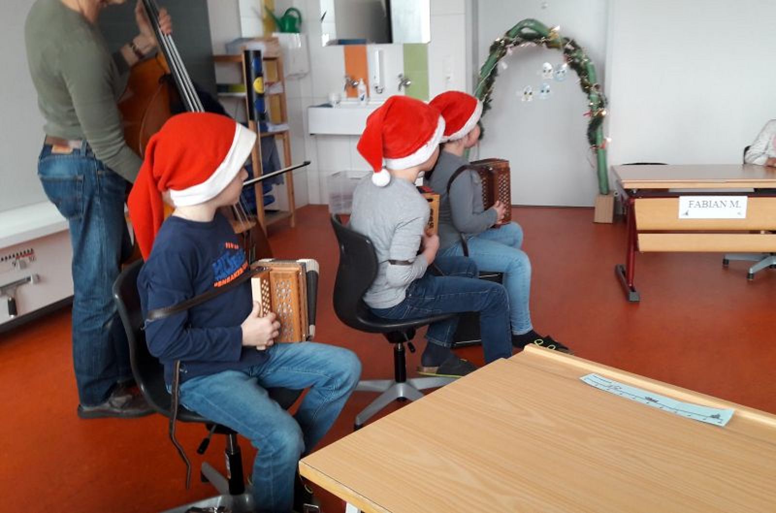 Den weihnachtlichen Jahresabschluss konnten die Zweitklässler nebst Grittibänz auch musikalisch geniessen. Sowohl Herr Bedrich Smetana, als auch das eigens für diesen Anlass 'eingeflogene' ad-hoc Ländler-Quartett gaben sich die Ehre.