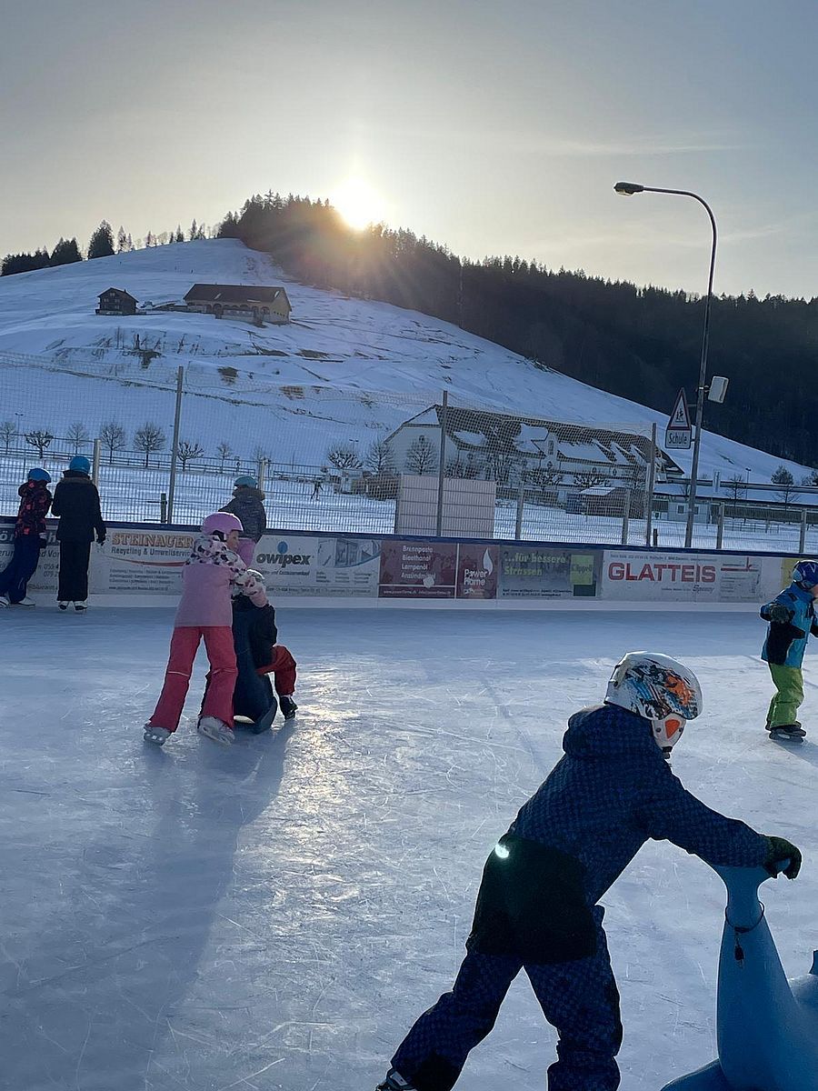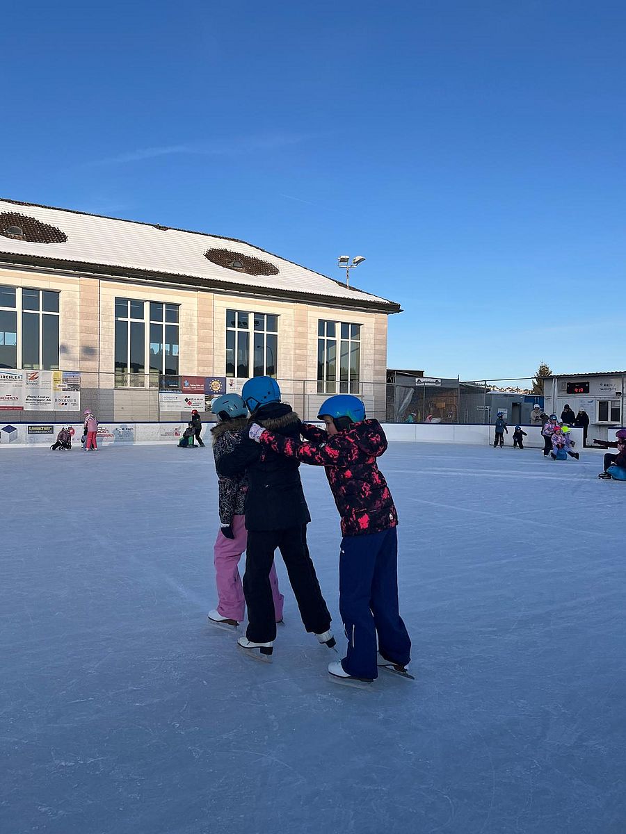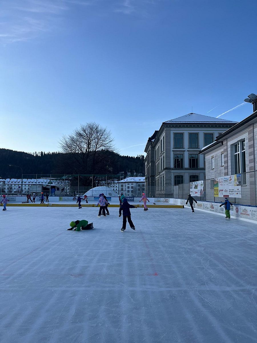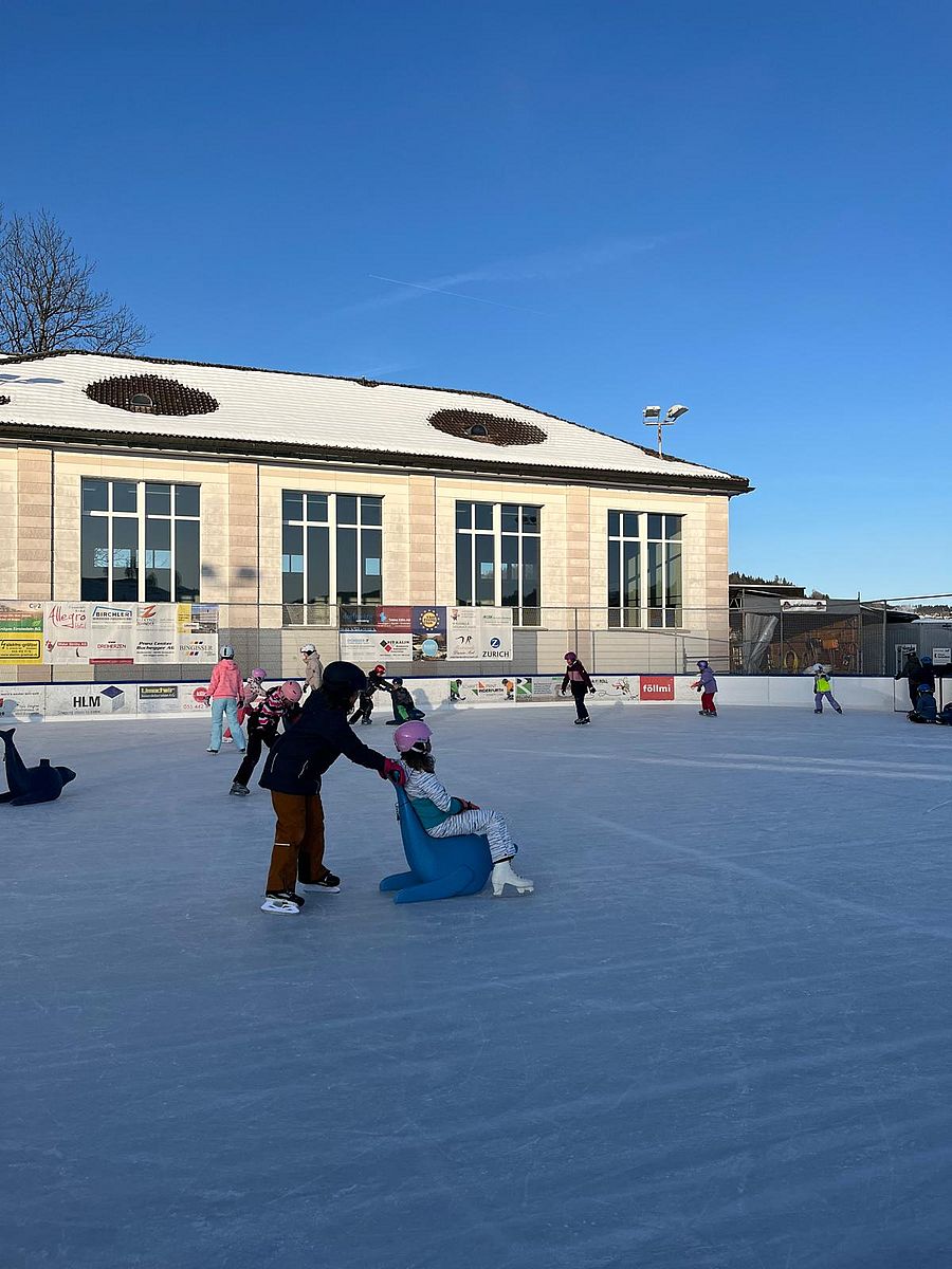 Bei schönstem Wetter durften die Kinder des Schulhaus Studen in Einsiedeln auf das Eisfeld. Egal ob Hockey spielen oder das erste Mal auf dem Eisfeld - die Kinder hatten einen riesen Spass.