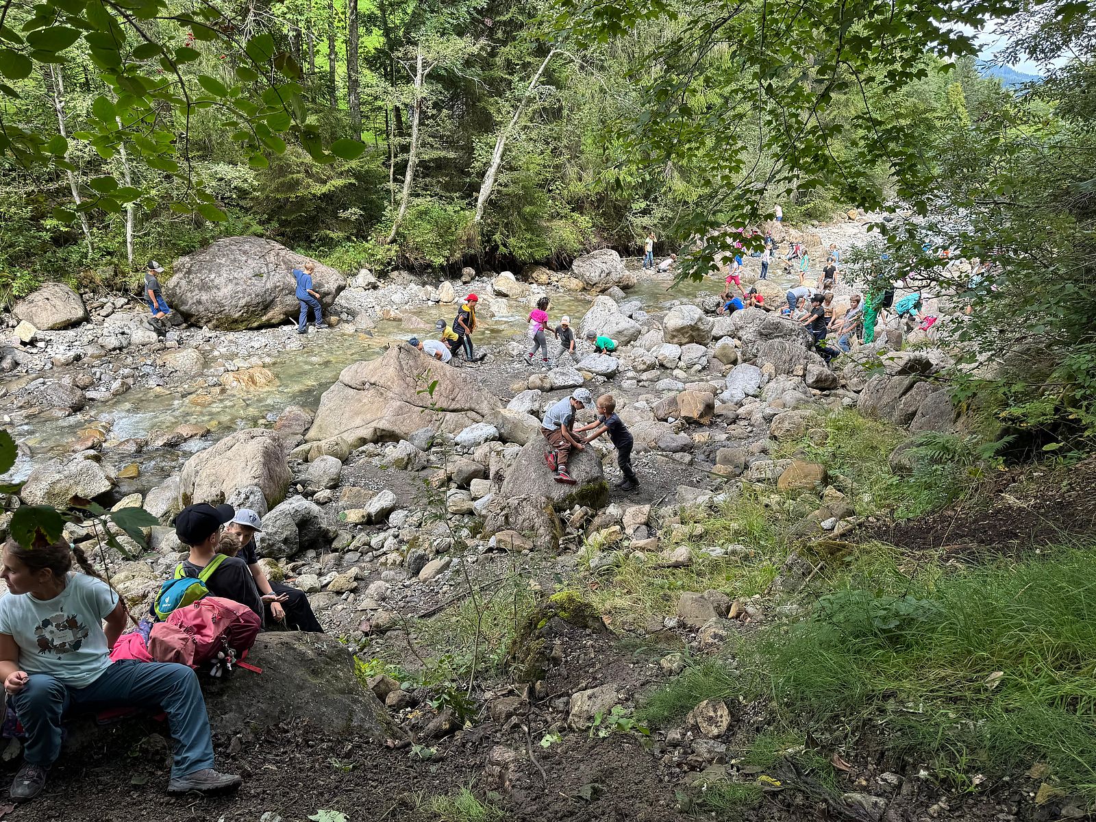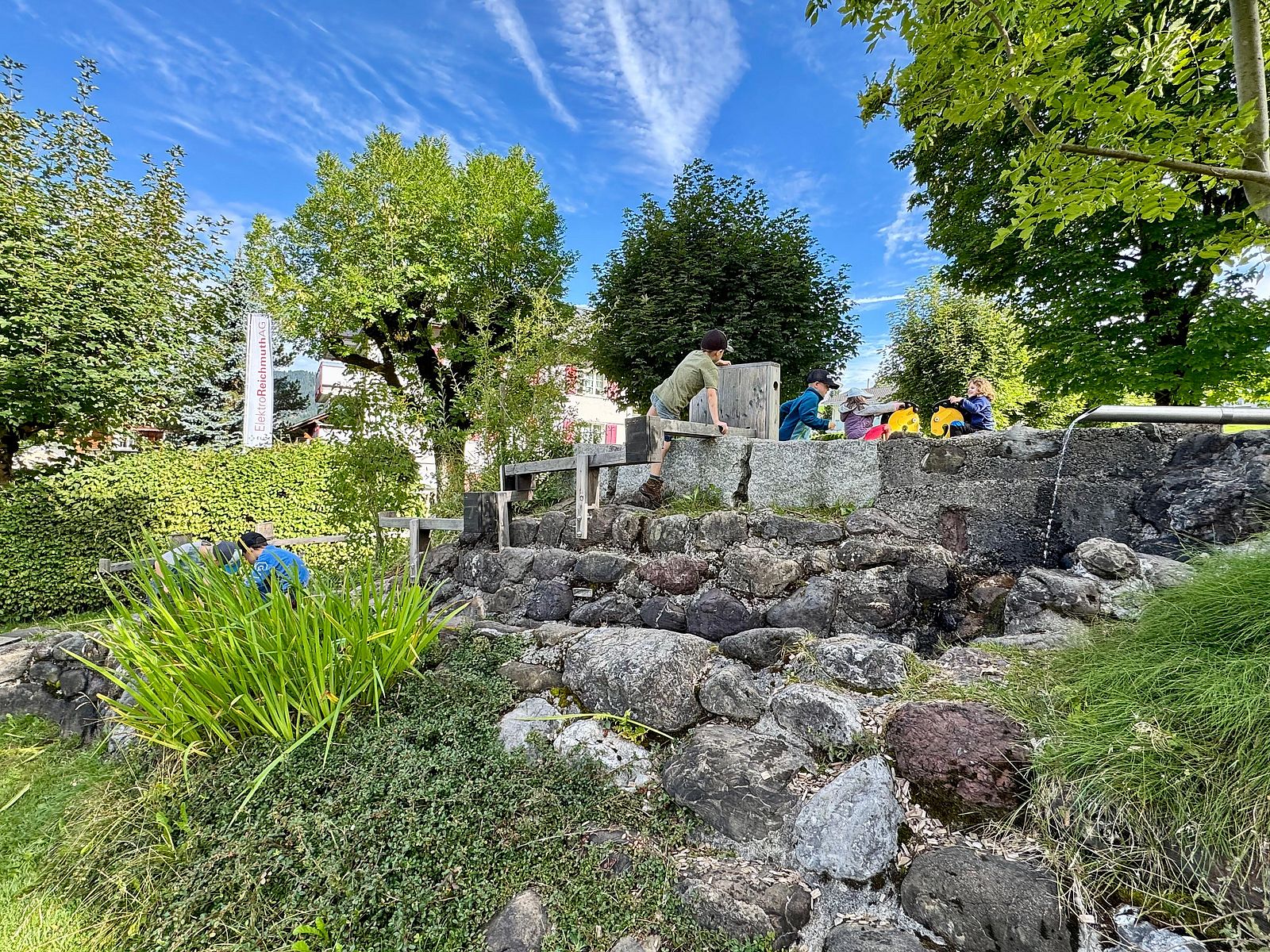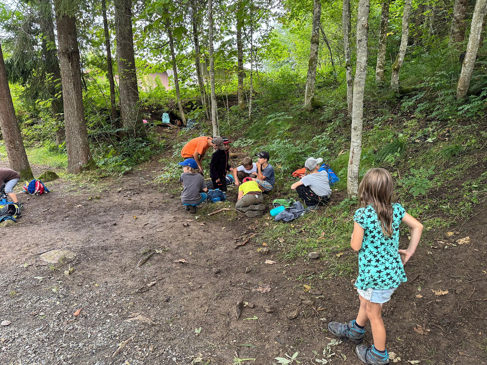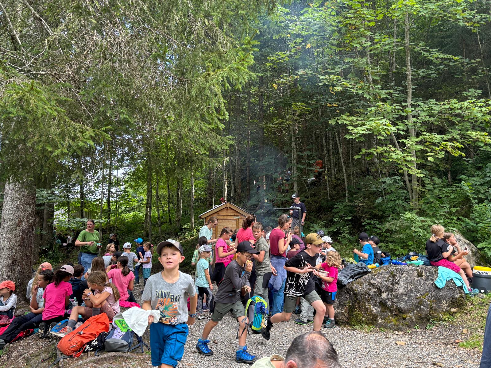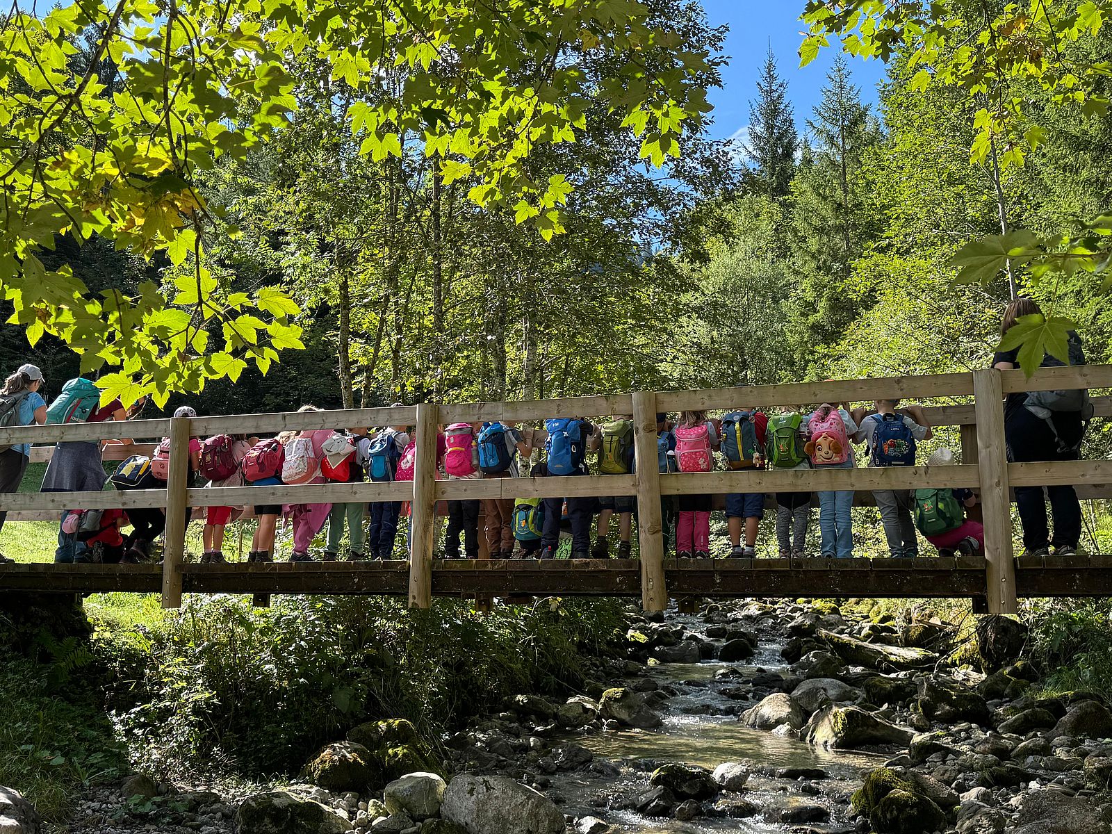 Dort angekommen, wurde die Zeit in vollen Zügen genossen: Die Schülerinnen und Schüler nutzten die Zeit, um im Wald und am Bach zu spielen und sich an der Seilrutsche auszutoben. Die Kinder waren mit Begeisterung dabei – auch wenn einige mit nassen Füssen den Rückweg antreten mussten, tat das der guten Stimmung keinen Abbruch.
