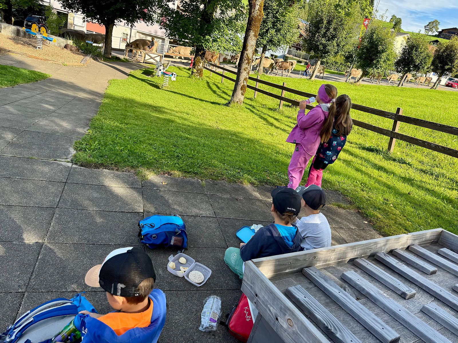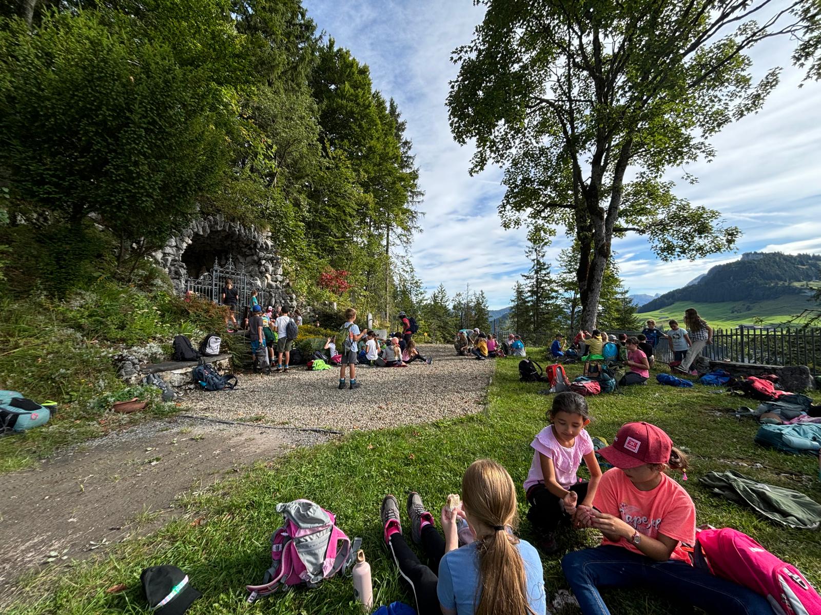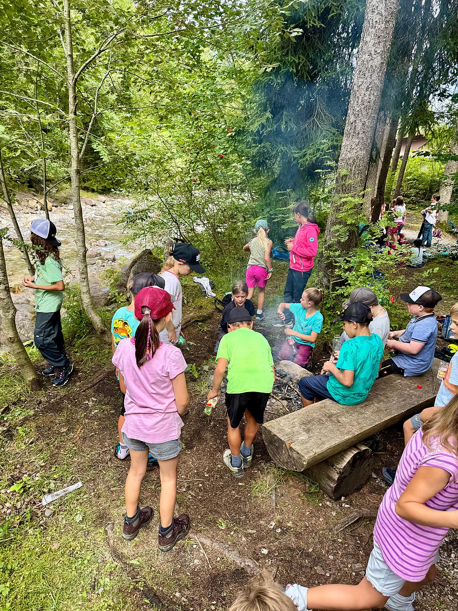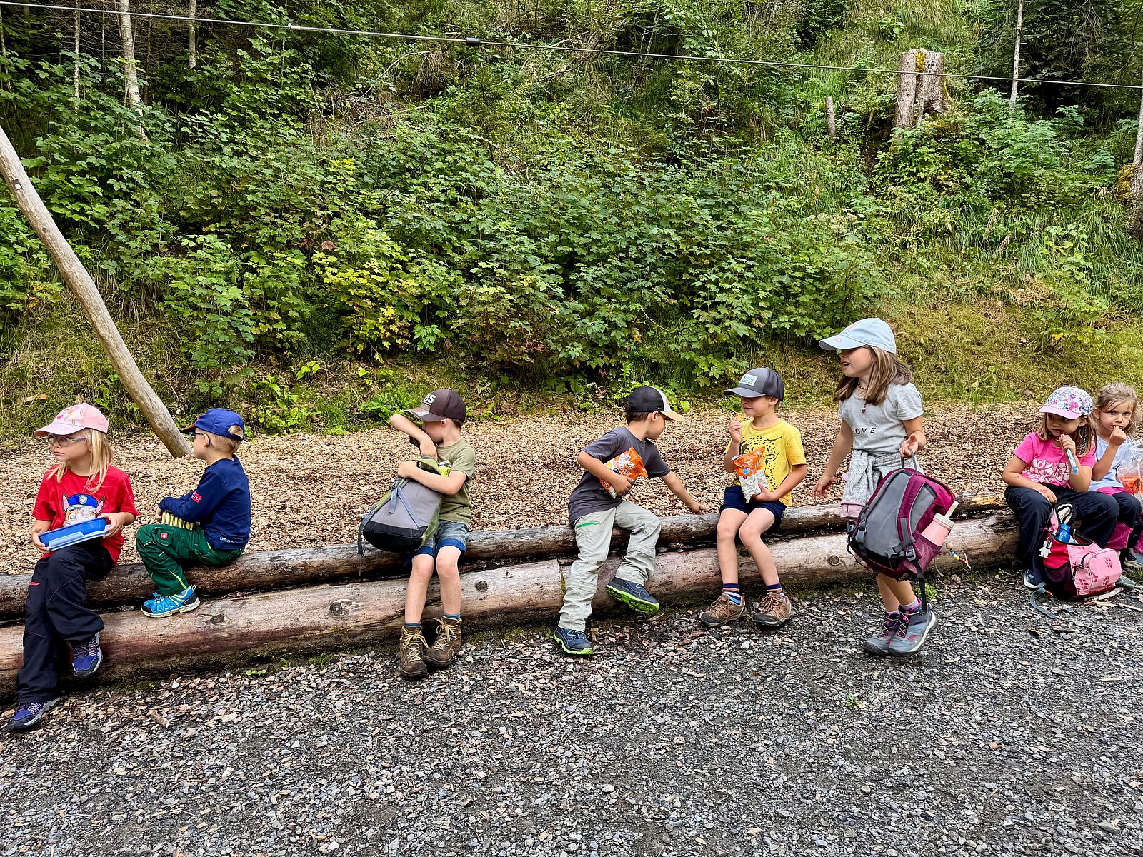 Dort angekommen, wurde die Zeit in vollen Zügen genossen: Die Schülerinnen und Schüler nutzten die Zeit, um im Wald und am Bach zu spielen und sich an der Seilrutsche auszutoben. Die Kinder waren mit Begeisterung dabei – auch wenn einige mit nassen Füssen den Rückweg antreten mussten, tat das der guten Stimmung keinen Abbruch.