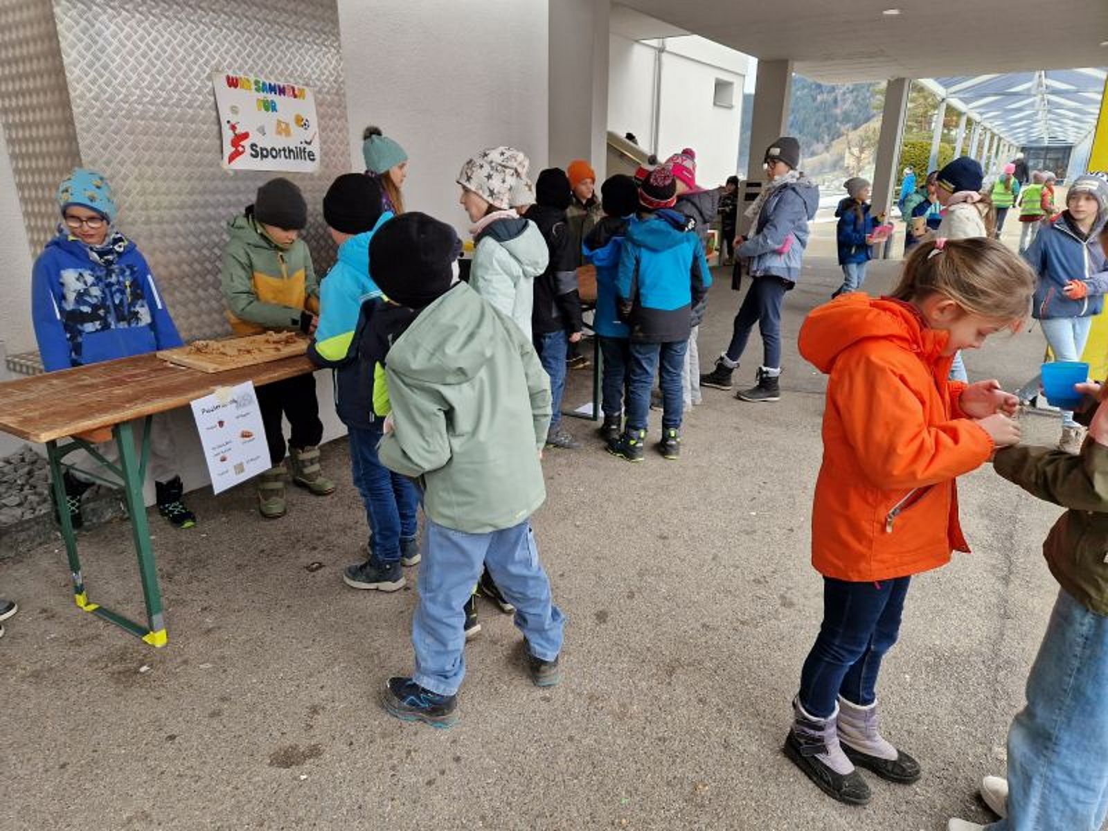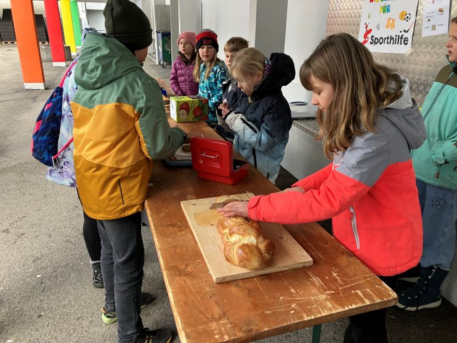 In der Adventszeit war auf den Pausenplätzen der Ybriger Schulen wieder richtig was los. Der Schülerrat hatte seine bewährte Idee des Pausenkiosks erneut umgesetzt – und die Kinder waren mit Begeisterung dabei. Jeden Tag brachten Schülerinnen und Schüler oder ihre Eltern feine Sachen von zu Hause mit: Zopf, Kuchen, Guetzli – und dazu gab’s wärmenden Orangenpunsch. Die Kinder der 3. bis 6. Klasse übernahmen jeweils den Verkauf. Mit den „Batzen“, die viele Kinder von zu Hause mitbrachten, war das Angebot meist schon nach kurzer Zeit ausverkauft.